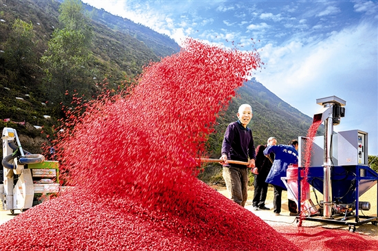 11月11日,靈寶市陽平鎮(zhèn)黃河灘小麥種植戶在技術人員指導下,正在對選好的種子進行拌種。據(jù)了解,拌種是通過在種子表面附著藥劑或營養(yǎng)劑,可有效防治病蟲害,提高種子活力,促進小麥生長。劉澇慈 攝