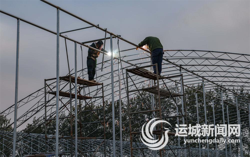近日,夏縣埝掌鎮(zhèn)埝掌村產(chǎn)業(yè)集群項(xiàng)目建設(shè)現(xiàn)場,工人在加緊建設(shè)日光溫室大棚。