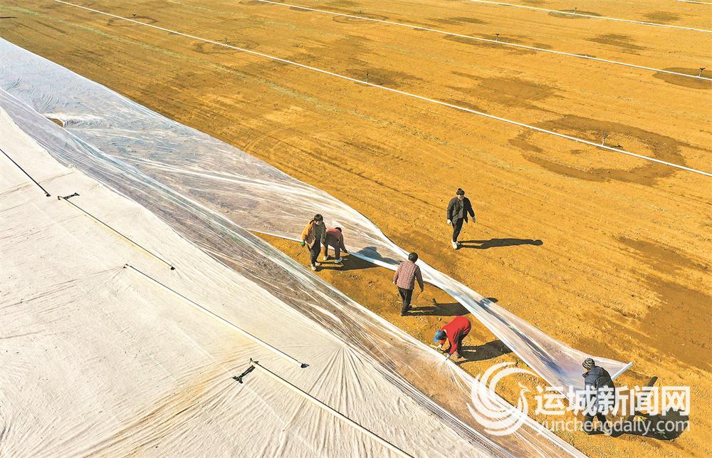 11月19日,夏縣裴介鎮(zhèn)石橋莊村的一處農業(yè)種植專業(yè)合作社田間,村民正給秋冬種作物進行覆蓋作業(yè),起到防寒、防凍、保墑的作用。