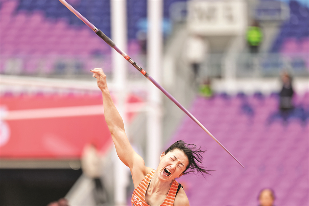11月19日,浙江隊(duì)選手劉靜逸在比賽中。當(dāng)日,第十五屆全國運(yùn)動會田徑項(xiàng)目女子七項(xiàng)全能標(biāo)槍比賽在廣州舉行。