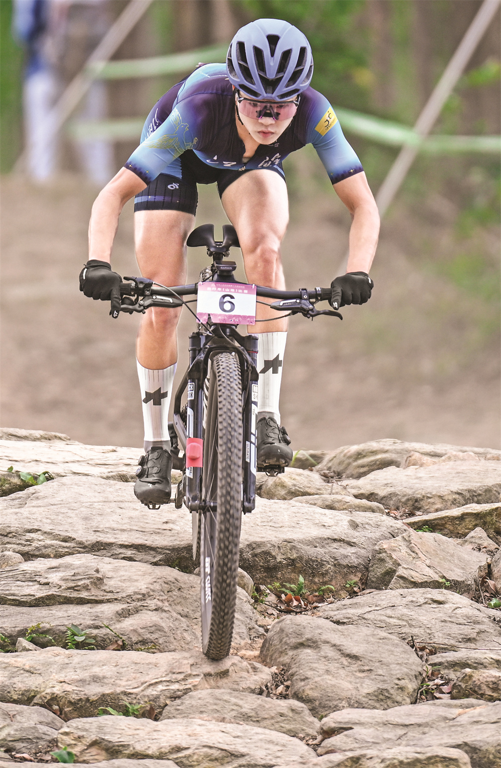 11月20日,江蘇隊(duì)選手魏錢錢在比賽中。當(dāng)日,在廣東江門舉行的第十五屆全國運(yùn)動(dòng)會(huì)山地自行車女子越野賽決賽中,江蘇隊(duì)選手魏錢錢獲得冠軍。