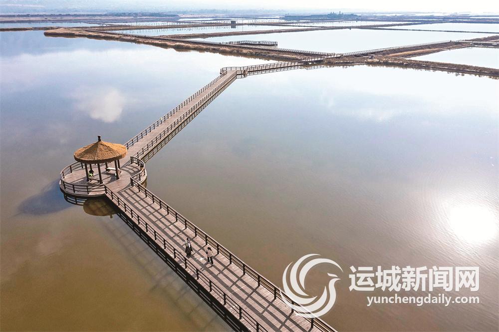 近期天氣晴好,不少市民來(lái)到木棧道,近距離感受鹽湖美景。