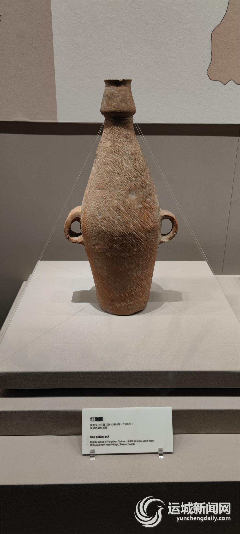 運(yùn)城博物館展出的夏縣西陰村紅陶瓶 記者 劉亞 攝