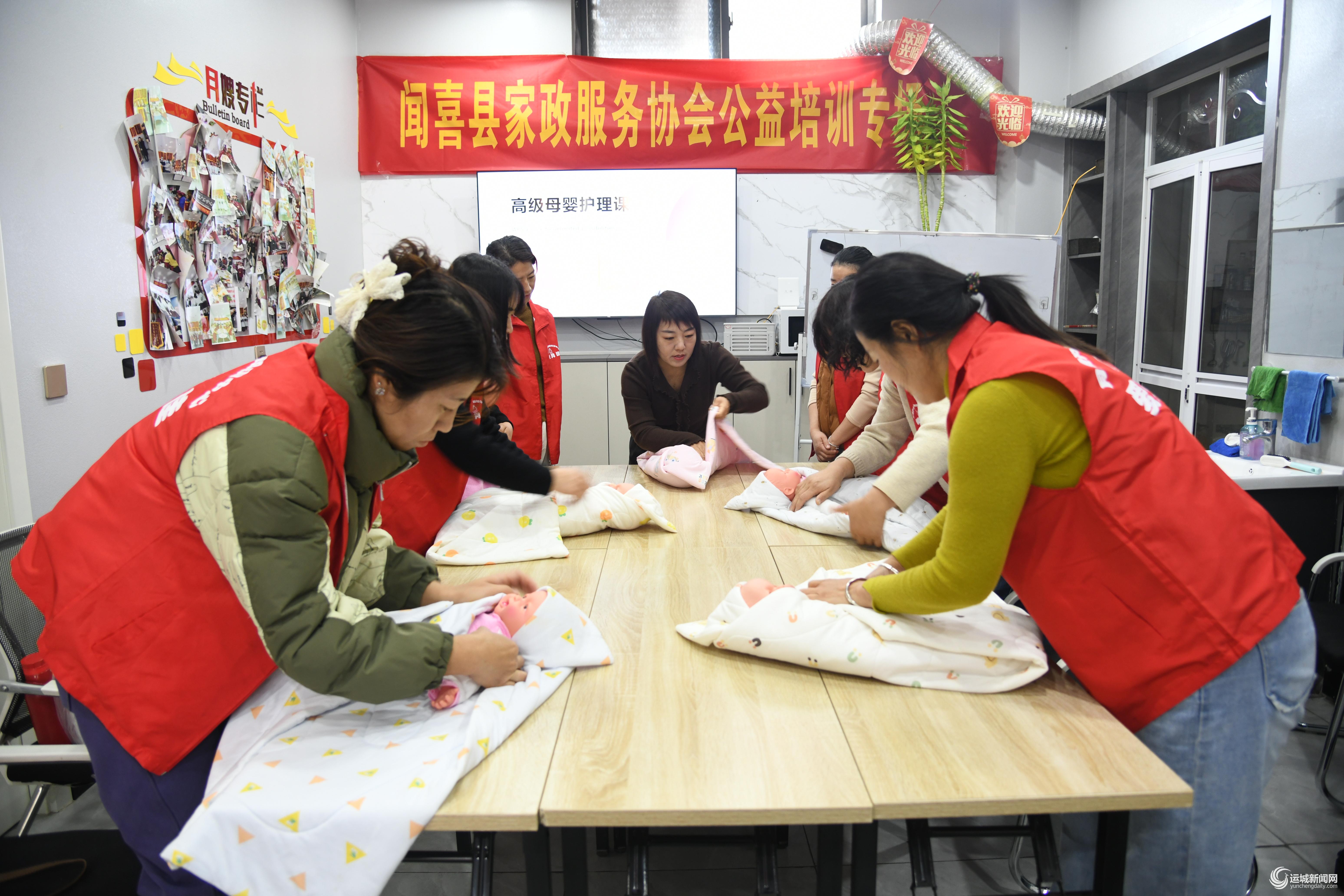 11月23日,聞喜縣家政服務協(xié)會公益培訓專場課堂上,學員在學習嬰兒護理技能。