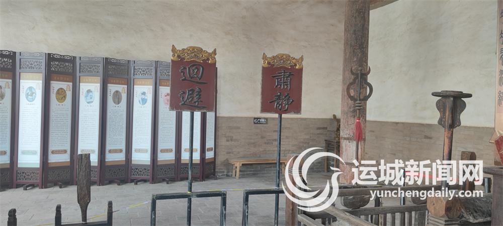 臨猗縣臨晉縣衙景區(qū)寫有“回避”“肅靜”字樣的對(duì)牌 記者 劉亞 攝