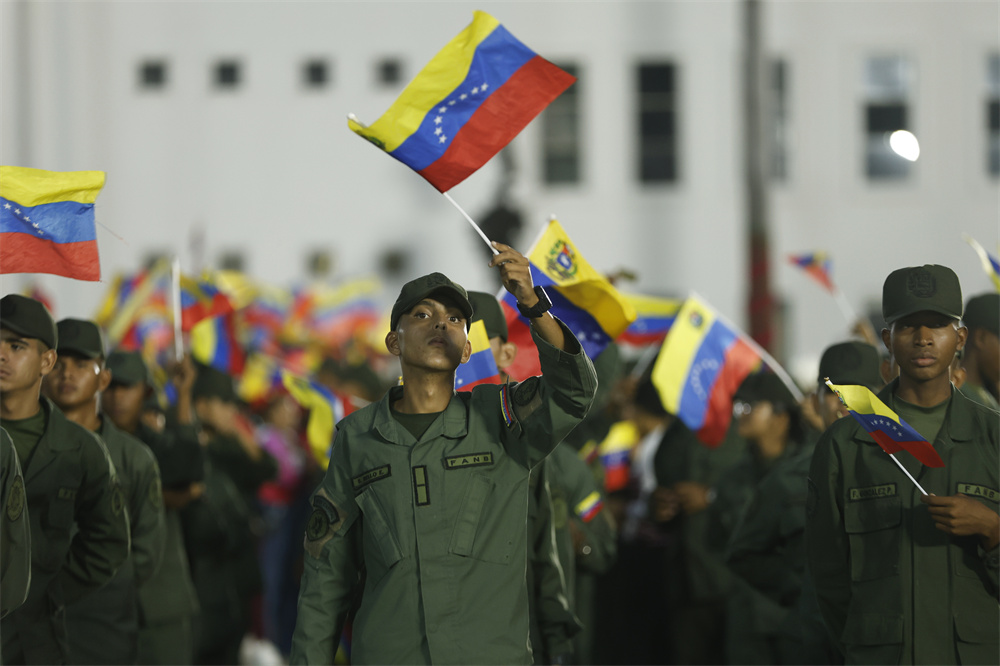 11月25日,委內(nèi)瑞拉玻利瓦爾國(guó)民武裝部隊(duì)成員參加在加拉加斯舉行的游行活動(dòng)。委內(nèi)瑞拉總統(tǒng)馬杜羅25日說,由于美國(guó)軍事威脅,委內(nèi)瑞拉正面臨國(guó)家存亡的“決定性時(shí)刻”。馬杜羅當(dāng)天在委首都加拉加斯的一場(chǎng)游行活動(dòng)中表示,美方在加勒比海的軍事部署是“帝國(guó)主義的威脅和攻擊”。面對(duì)當(dāng)前形勢(shì),委內(nèi)瑞拉人民、軍隊(duì)和警察需團(tuán)結(jié)起來,鼓舞士氣,抵御外部威脅,“如果祖國(guó)需要,我們將為祖國(guó)獻(xiàn)出生命”。