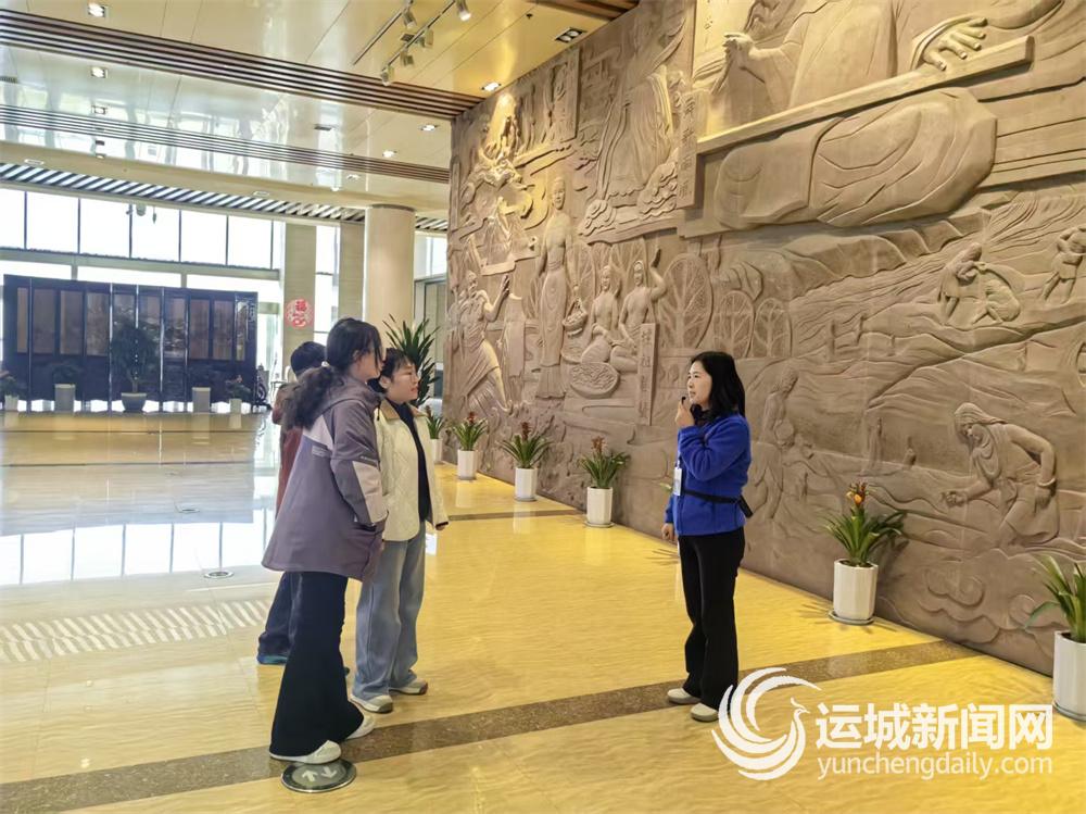 志愿者高亞娜為觀眾講解序廳浮雕墻發(fā)生在河?xùn)|大地的歷史神話傳說