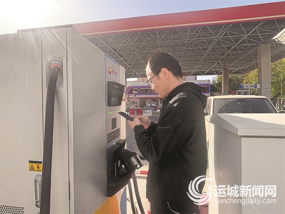11月29日下午,市民王磊來到我市中心城區(qū)中國石油運城吾悅廣場充電站,為他的新能源汽車充電。插上充電槍、掃碼啟動后,車輛進入充電狀態(tài),王磊便和家人走進商場用餐、購物。