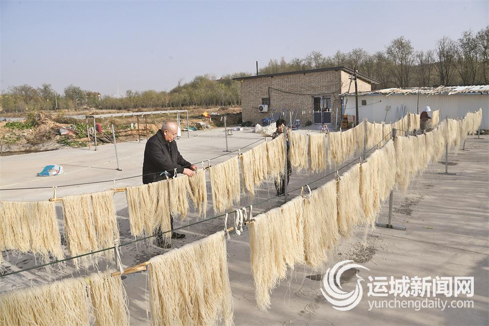 12月2日,聞喜縣桐城鎮(zhèn)東吳村村民在晾曬紅薯粉條。冬日里,一桿桿、一片片晾曬的紅薯粉條,成為別樣的鄉(xiāng)村風(fēng)景。