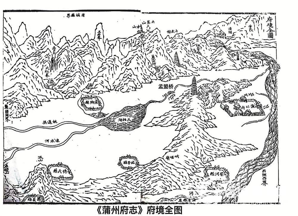 清乾隆《蒲州府志》府境全圖上,可以看到在今永濟的孟盟橋,涑水河經(jīng)此向西流入黃河,北邊的黃土臺塬,是一道天然圍堤。湖水經(jīng)千萬年的積聚,水滿則溢,湖水選擇較低處的孟盟橋一帶,開始向外流向黃河。隨著孟盟橋處河道不斷沖刷下切,湖水外流增大,湖面隨之縮小,到了1500年前的北魏,沿著涑水河古道,留下了女鹽澤、晉興澤、張澤等湖泊。