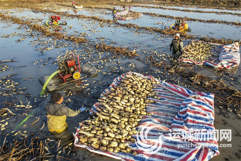 11月30日,種植戶在永濟市韓陽鎮(zhèn)黃河灘采收蓮藕。
