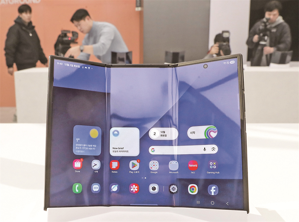 這是12月2日在韓國首爾拍攝的三星三折疊手機。當日,韓國三星電子在首爾舉行新品發(fā)布會,發(fā)布了旗下首款三折疊手機,售價為3590400韓元(約17305元人民幣)。 新華社記者 姚琪琳 攝