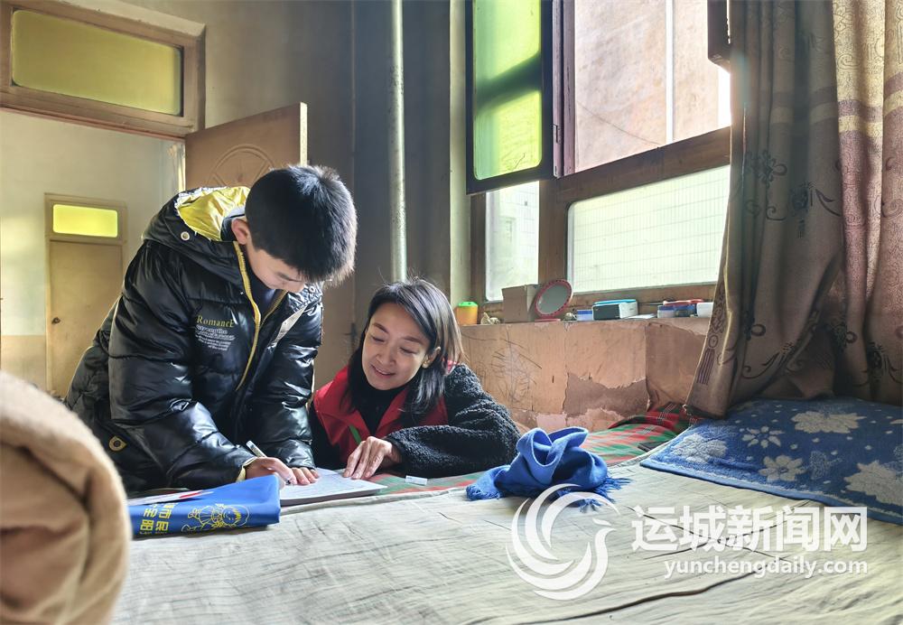 臨猗縣志愿者輔導(dǎo)困境兒童寫作業(yè)。(資料圖片)