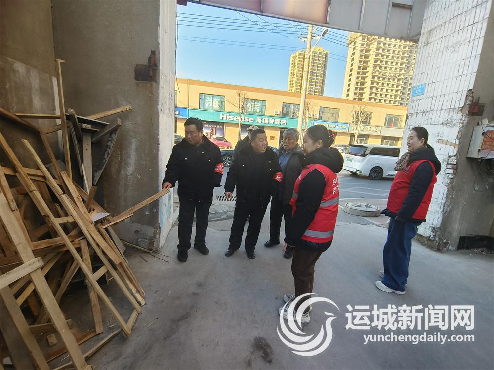 鹽湖區(qū)中城街道西花園社區(qū)“紅袖章”巡邏隊(duì)協(xié)助社區(qū)消除安全隱患。(資料圖片)