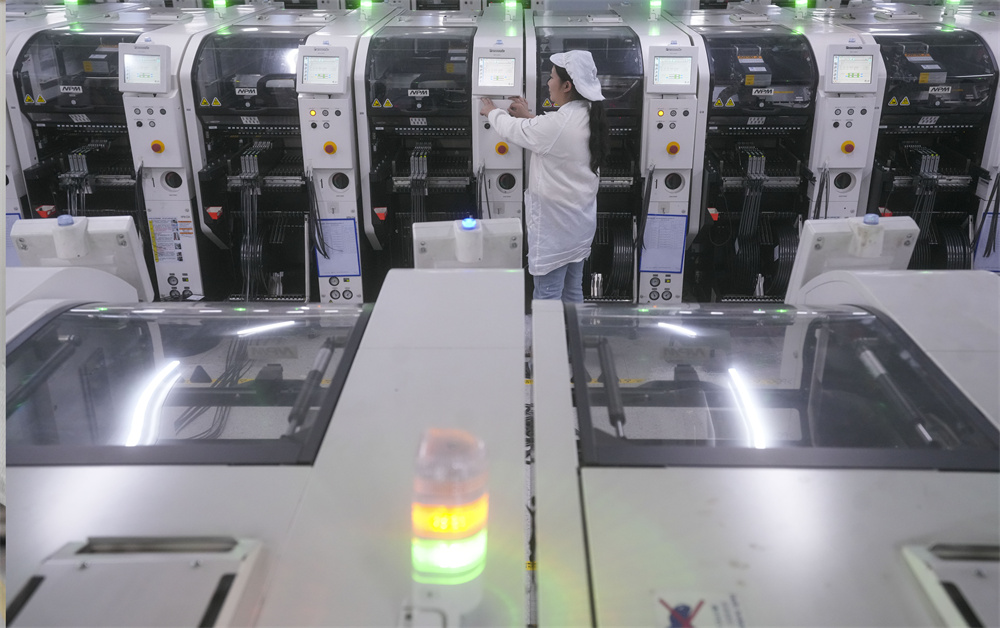 12月2日,在重慶新視通智能科技有限公司SMT(表面組裝技術(shù))生產(chǎn)車間,工人在操作自動貼片機。