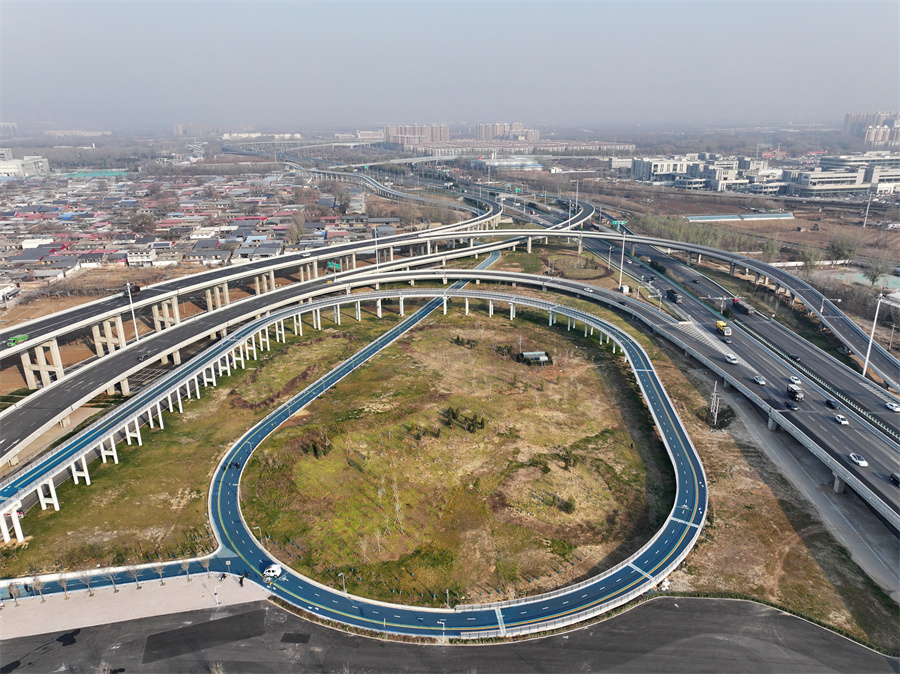 這是石家莊市環(huán)城綠道西線(12月10日攝,無(wú)人機(jī)照片)。