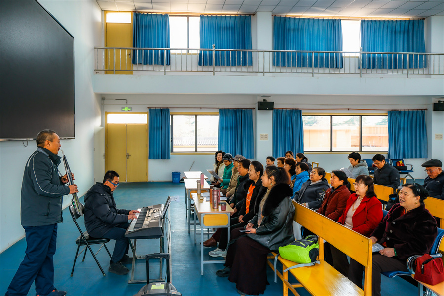 疊翠社區(qū)居民進(jìn)行大合唱排練。